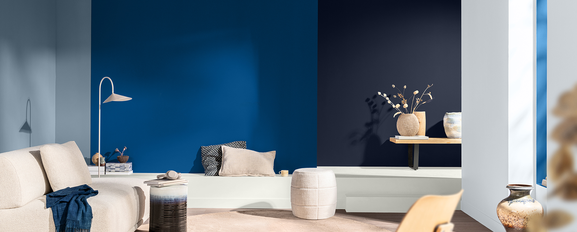 Die Sikkens Farbexperten stellen voller Stolz die Farben des Jahres 2026 vor: The Rhythm of Blues. Entdecke die vielseitige Indigo-Farbfamilie: ein energiegeladenes Blau – Free Groove™, ein luftiges Hellblau – Mellow Flow™ und das meditative Dunkelblau – Slow Swing™. Diese ausdrucksstarken Farben sind der perfekte Ausgleich, um die Stimmung in jedem Raum zu verbessern.