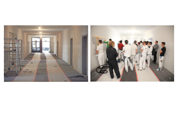 Die städtische Meisterschule für das Maler- und Lackiererhandwerk München veranstaltete einen Workshop zum Thema „rationelle Beschichtungstechniken“. Das Besondere: Dieser fand nicht in einem Klassenzimmer oder auf einer Baustelle statt, sondern im 3. Stockwerk des eigenen Hauses in der Luisenstraße. Unterstützt von der Industrie, die das Material sponserte und Anwendungstechniker stellte, renovierten rund 70 angehende Jungmeister drei Tage lang ihren Flur – rund 500 qm Wand- und Deckenflächen sowie 13 Türen ...