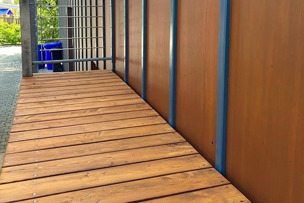 AkzoNobel Berater Michael Maune empfahl daher Cetol BL Natural Mat. Dank der innovativen NUTRI PROTECT TECHNOLOGY schützt die wasserverdünnbare Außenlasur das Holz dauerhaft und gibt ihm seine ursprüngliche Schönheit zurück.