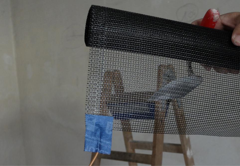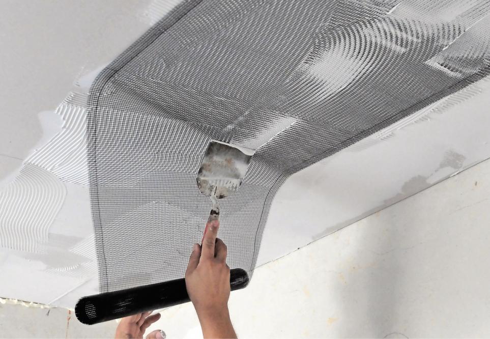Nachdem der Planer des Heizungsherstellers den Heizbedarf und die erforderliche Fläche der Heizbahnen ermittelt hat, kommt der Maler zum Zuge. Zunächst trägt er überall dort, wo sich die Bahn später befinden soll, mit dem Zahnspachtel eine dünne Schicht Spachtelmasse auf. In diese bettet er das Heizgewebe ein und drückt sie mit dem Spachtel fest. Dann schließt der Elektriker die elektrischen Leitungen an die Steuerungstechnik an. Danach wird die Bahn zwei bis drei Millimeter dick mit Spachtelmasse bedeckt. Für die dekorative Schlussbeschichtung ist Alphasol Silikat von Sikkens die perfekte Wahl.
