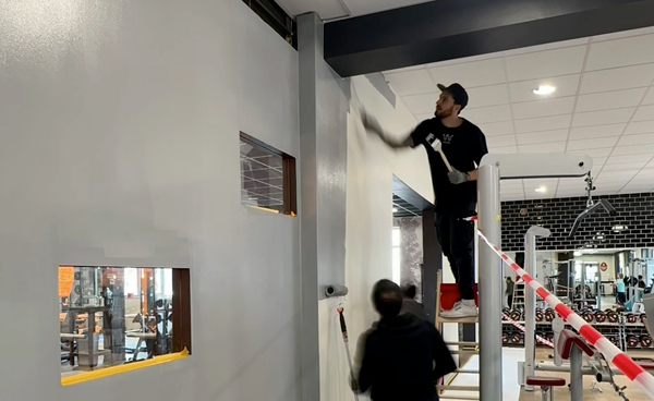 Ein besonders gelungenes Beispiel: die Wandbeschichtung im neuen San-Fit-Fitnesspark in Friedberg. In einem Umfeld mit hoher mechanischer Belastung durch Taschen, Schuhe und Geräte demonstriert Fiedler die Vorteile von Alpha Rezisto Anti-Marks von Sikkens. Dank SCUFF SHIELD TECHNOLOGY bleibt die Oberfläche selbst bei intensiver Beanspruchung frei von sichtbaren Abriebspuren – ein klarer Beweis für Qualität und Alltagstauglichkeit.